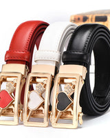 Dit is de 'Automatische' riem voor dames, een stijlvolle en functionele accessoire vervaardigd uit leder. Deze riem beschikt over een automatisch gespsysteem dat zorgt voor een precieze en moeiteloze aanpassing van de pasvorm, zonder traditionele gaten. Het gladde oppervlak van de gesp draagt bij aan het behoud van je kleding, door de kans op gaten of slijtage in je shirts te verminderen.