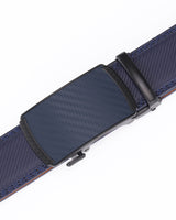 De riem is eenvoudig inkortbaar, waardoor hij perfect op maat te maken is voor elke drager. Met zijn opvallende 'carbon look' patroon op de gesp en de algemene verfijnde uitstraling, is deze riem een uitstekende keuze voor zowel formele als casual outfits, en een veelzijdige toevoeging aan elke herengarderobe.