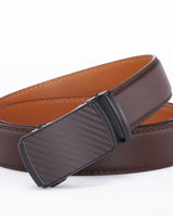 Dit is de stijlvolle 'Automatische carbon look' riem voor heren, een functionele accessoire die comfort en elegantie combineert. Vervaardigd uit kwaliteitsleer, biedt deze riem een duurzaam en soepel draagcomfort. Het innovatieve automatische gespsysteem zorgt voor een moeiteloze en precieze aanpassing van de pasvorm zonder de noodzaak van traditionele gaten. De gladde afwerking van de gesp helpt bovendien om de levensduur van je shirts te verlengen door wrijving en potentiële gaten te verminderen.