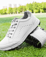 Deze golfschoenen voor heren zijn ontworpen voor comfort en stabiliteit op de golfbaan. Ze zijn voorzien van een duurzame zool met noppen, wat zorgt voor grip tijdens de swing en het lopen over verschillende terreinen. Het bovenwerk van de schoen biedt ondersteuning en is geschikt voor langdurig gebruik.