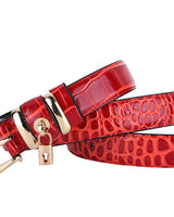 Deze riem met sier slotje geeft een speelse en unieke twist aan je outfit. Het subtiele slotje fungeert als een decoratief accent dat zowel stoer als elegant oogt. De riem is gemaakt van stevig materiaal en is voorzien van een handige sluiting die eenvoudig verstelbaar is naar de gewenste pasvorm.