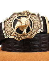 Deze Gespero herenriem is een krachtig statement voor elke man met een eigenzinnige stijl. De riem is vervaardigd uit hoogwaardig materiaal met een robuuste textuur die direct de aandacht trekt. Het middelpunt is de indrukwekkende goudkleurige gesp met een gedetailleerde stierenkop, omringd door sierlijke elementen. Dit is de perfecte riem om je persoonlijkheid te laten spreken en je outfit een onvergetelijke twist te geven.