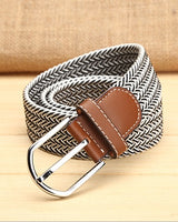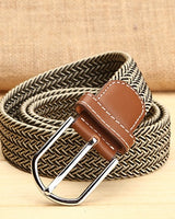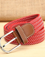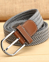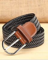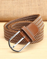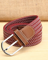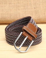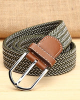 Deze elastische herenriem met gevlochten kleurpatroon biedt een combinatie van stijl en draaggemak. Door het rekbare materiaal past de riem zich moeiteloos aan de taille aan en biedt hij een stevige pasvorm zonder vaste gaatjes.